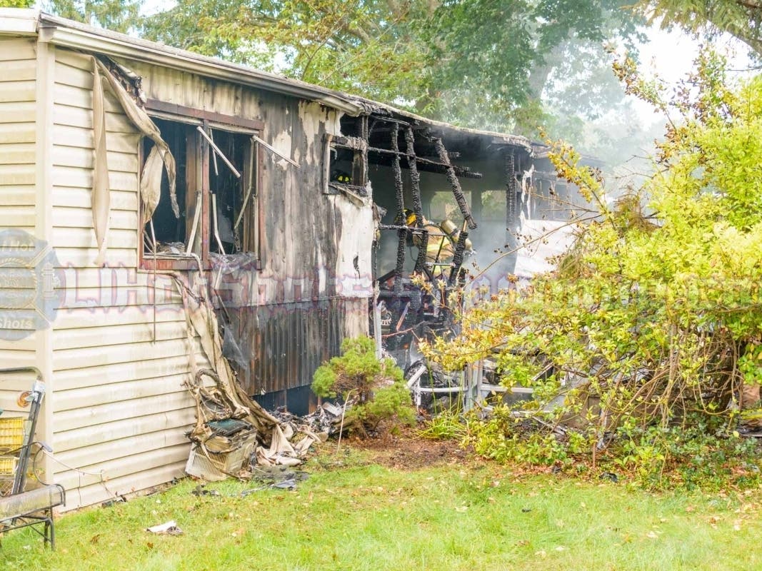 According to Southampton Town Police, the fire was reported at 3:17 p.m. on Pond Drive in the Riverwoods Mobile Home Community. One person was injured in the fire and transported by ambulance to a hospital for treatment, police said.