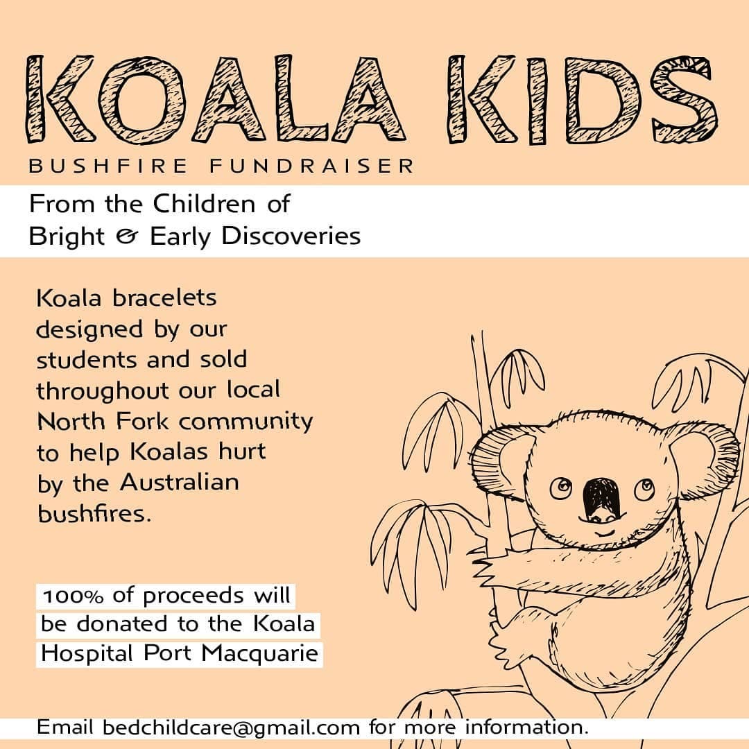 RIVERHEAD, NY — Children at the Bright & Early Discoveries Child Care Center in Riverhead will learn at an early age about giving back: They're putting their hands and hearts together to make Koala Pendant bracelets to raise money and help the animals injured in the Australia bush fires.