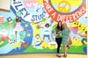 The mural was created by local students in grades 2 to 4.
