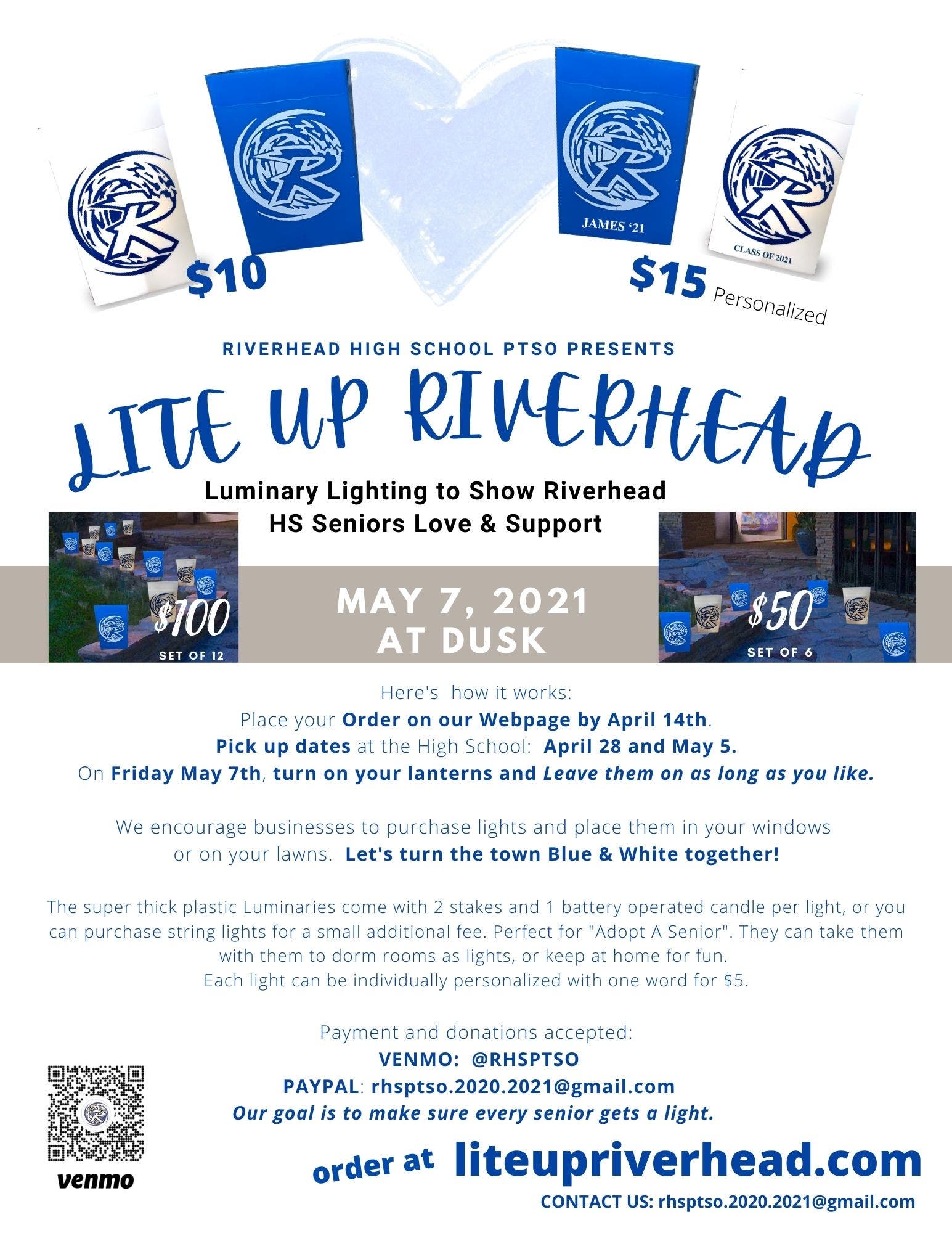Riverhead High School's Parent Teacher Student Organization is presenting the "Lite Up Riverhead" event, to take place on May 7 at dusk.