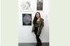 Photo Caption #2: Melissa Pressler in front of her image hanging at the Parrish Art Museum Student Exhibition. Her piece is an ink illustration, titled “Om”.