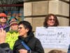 After demonstrating outside, the group met inside Zeldin's office with Mark Woolley, district director, where the group was treated with courtesy, Quigley said.