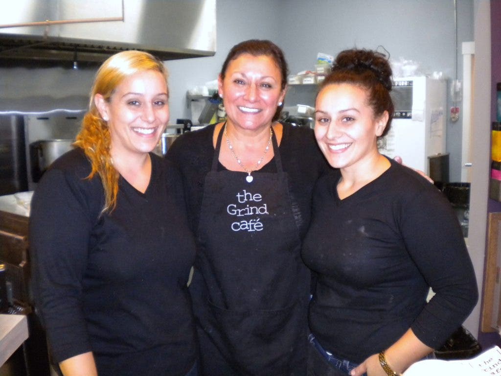 Inside the Grind Café, a corner bench with cozy purple and black cushions is at times empty. Owner and bakery chef Maryann Iacono believes it is the very spot where her late husband would have sat, had he survived his cancer last July.