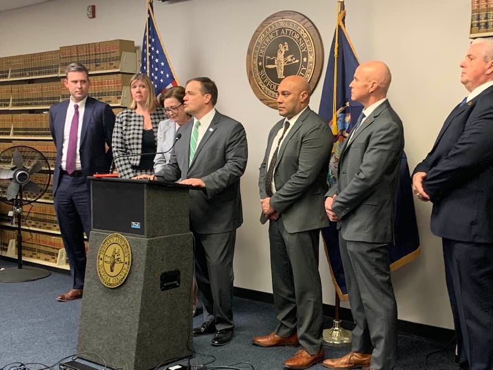 Suffolk County District Attorney Ray Tierney spoke to reporters after the verdict, thanking his trial team, including Assistant District Attorney Kerriann Kelly, the jury, and members of the Suffolk County Police Department's homicide division.