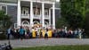 The group met on the front lawn of the school and joined for a "peaceful walk" into Bridgehampton, stopping at the Hampton Library and making a loop of the village before returning to the school.