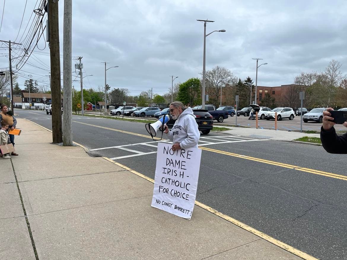 Those present at the rally carried signs that read "We Won't Go Back," "Notre Dame-Irish Catholic For Choice, No Coney Barrett!" and "Thank You, NY Dems, 4 Reproductive Health Act."