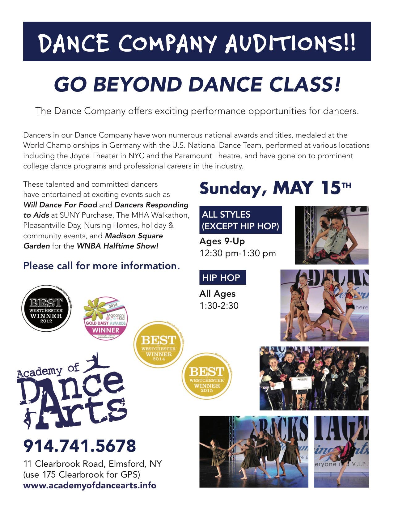 DANCE COMPANY AUDITIONS for Academy of Dance Arts 2016-17 Season Sunday, May 15th, 12:00pm! Looking for Boys & Girls of all ages!