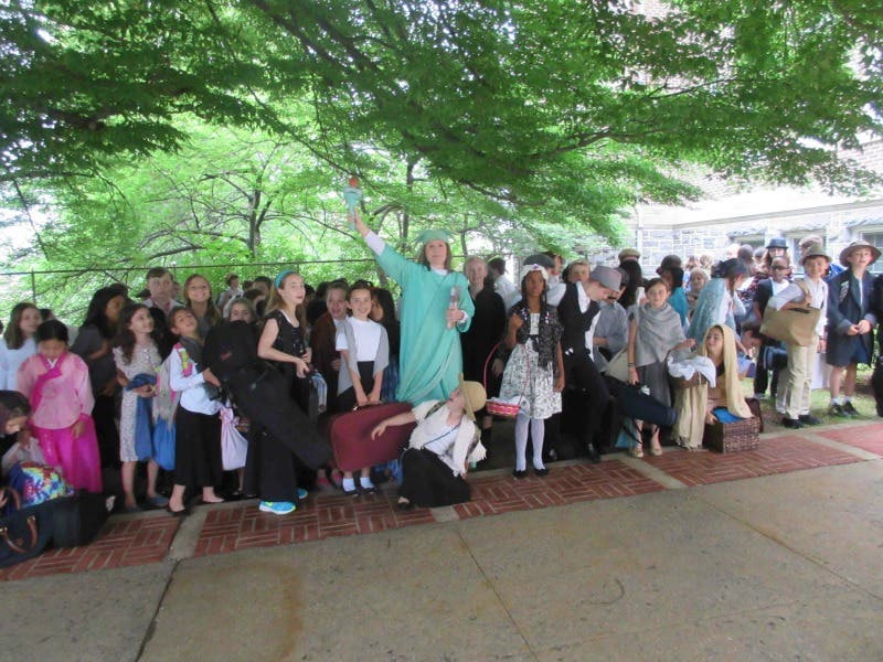 The students recreated what it was like to travel through Ellis Island in the early 1900s, part of an annual district event, which correlated to a study unit on the great wave of European immigration to America at the turn of the century. Students role-played as European immigrants, while parent volunteers served as official inspectors and teachers as immigration agents, all dressed in period costume.