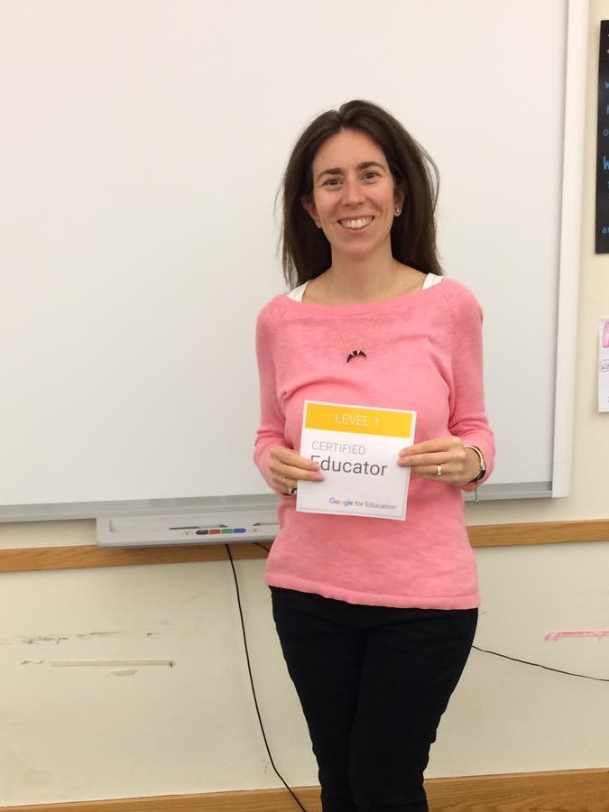 Her certification demonstrates proficiency on the use of Google tools in the classroom and standard technology implementation skills, according to a district spokesman.