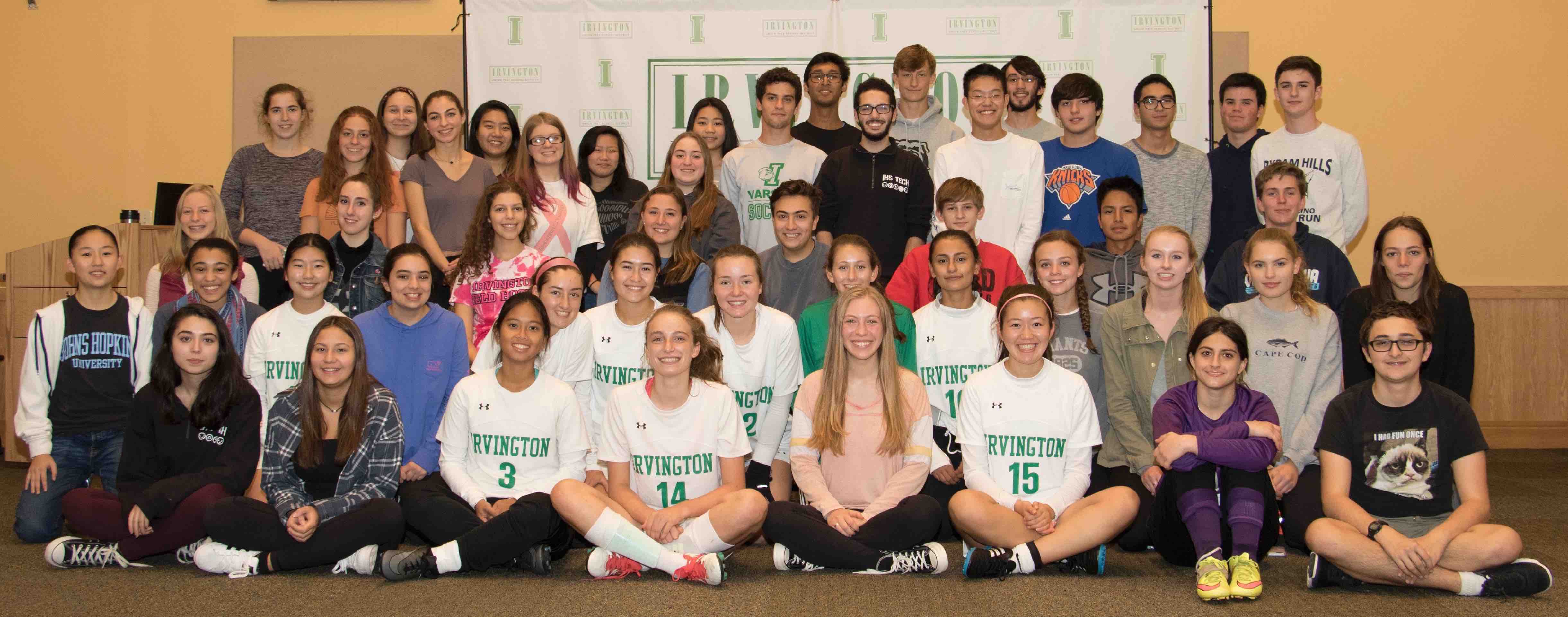 Photo caption: Irvington High School juniors and seniors inducted to the National Honor Society. Photo courtesy of the Irvington Union Free School District.