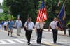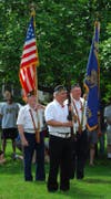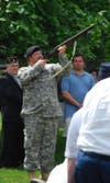 Monday’s early morning downpour did not dampen the spirit of Dobbs Ferry’s Memorial Day parade. As the sky brightened, marchers assembled on Mohican Park Avenue. First stop, the Little White Church Cemetery on Ashford, where the color guard saluted a Civil War general on this the 150 anniversary of the Civil War.