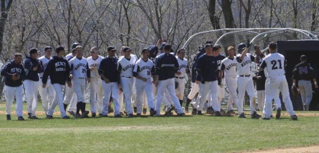 The Mercy College baseball team bade farwell to a quintet of seniors - Chuck DeHart, Joe Ganz, Walter Kowalczyk, Billy Dring and Tyler Savin - today (May 5) before dropping both games of a doubleheader to Dominican (N.Y.) College.