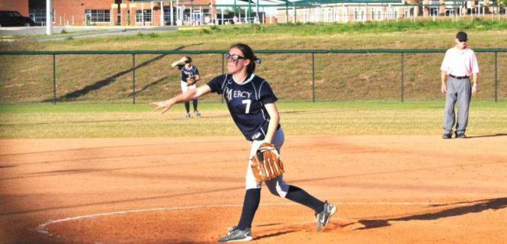 In the opening contest, Mercy sophomore hurler Alexandra Puglisi (Shelton, Conn.) fired a no-hitter en route to her ninth win of the year. She walked one and struck out eight batters.
