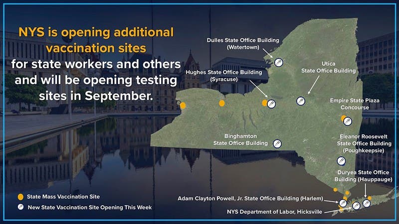 3. MTA and Port Authority employees working in New York facilities will be required to either be vaccinated or get weekly testing starting Labor Day. Employee-only vaccination sites will increase access for these workforces, along with nine new vaccination sites that will open this week.