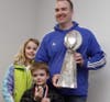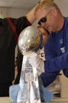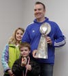 More than 100 local New York Giants fans come to the Irvington Senior Center on Saturday afternoon to see the Vince Lombardi Trophy that was awarded to the Giants for their 21-17 win over the New England Patriots in Super Bowl XLVI on Feb. 5. Team Public Relations Chief Pat Hanlon brought the trophy.