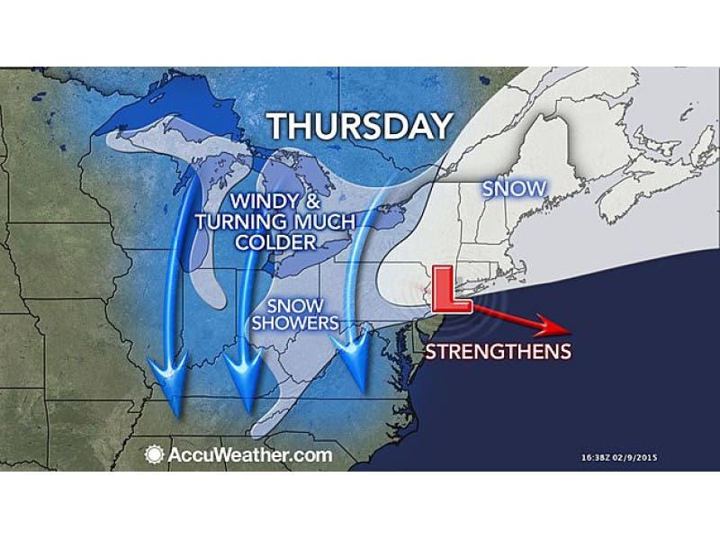 “There is also the potential for the storm to strengthen as it moves near the Atlantic Ocean. In this scenario, a swath of moderate to heavy snow could develop in part of the coastal Northeast,” writes Alex Sosnowski, AccuWeather.com Senior Meteorologist. “During the day Thursday, spotty snow is likely to impact Philadelphia; New York City; Albany, New York; and Hartford, Connecticut. It is from late Thursday into Friday morning when the storm could strengthen quickly enough to bring steadier and perhaps heavier snow from part of New Jersey and eastern New York state to Massachusetts and coastal Maine.”