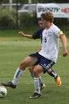 Senior Chris Harkins heads the game-winning goal in the first half.
