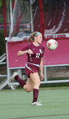 With a little more than nine minutes remaining in the game Caroline Beaty made a run down the right sideline from her right back position. Getting into open space she received a pass from Sam Miesemer at the 18-yard box and Beaty lofted a ball towards the goal. And as any soccer coach knows, when you put the ball on goal only good things can happen. South Side keeper McCarthy went up for the ball but it barely stayed under the bar. She couldn't reach it and Garden City had the 2-1 lead.