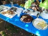 Carly McHale, Emma Weisman, and Jess Fernandez had the messiest job of the afternoon. The three girls manned the pie-throwing station, allowing more-than-willing patrons to hurl shaving cream pies at their faces.