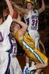 Lawrence, running its usual up tempo style struggled with consistency at times. Despite occasionally losing its momentum, the Golden Tornadoes still had three scorers in double figures, led by Eddie Robinson’s 26 points, and Samson Bialostok’s 19 points and 7 rebounds.