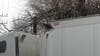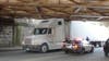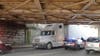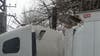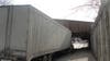 The roof of the truck suffered some damage, while the bed of the trailer had a gaping hole in its front.