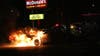 A car went up in flames in front of a McDonald's in Farmingville early Thursday morning.