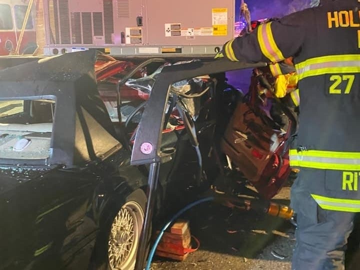 Police said that just before 6 a.m., a man was driving a 2000 Mercury Grand Marquis west on Sunrise Highway when it struck the rear of a 2000 International Harvester flatbed truck that was disabled in the right lane between exits 52 and 51 in Holbrook.
