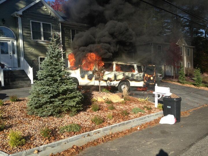 A 2004 Ford van caught fire around 9:13 a.m. in the driveway of a home at 34 Cleary Road, police said.