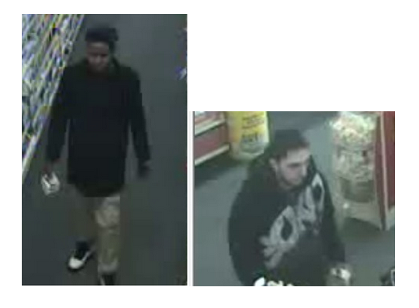 One suspect is described as a black male with a thin build. He was wearing a dark coat, tan-colored pants and black and white sneakers. The other suspect is described as a white male with a thin build. He was wearing a black hooded sweatshirt with white lettering on the front.