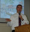 At the town hall meeting Wednesday, Ray DiBiase, an engineer and the Executive Vice President of L.K. McLean Associates, said there would be 60,000 square feet of retail space, 200 seats in accompanying restaurants, 50,000 square feet for offices, a 30,000 square foot health facility and five acres for sewage treatment.