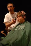 Perhaps the best of them all was junior Joe Lunger, who said he would have his mop-top shaved if they raised $100. It didn't take long. Less than 90 seconds later people around the auditorium ran up with money and Lunger was on stage.
