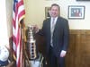 Caracappa's office looks less like what one might expect from a corrections officer and more like what one would expect of a man cave in a finished basement. It's filled with plenty of sports memorabilia: hockey sticks, local paper front pages, framed sports jerseys, numerous photos of Caracappa posing with sports legends and a replica of the Stanley Cup - which is probably the first thing a visitor notices when he or she walks into the room.
