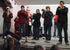 The evening's emcee, Paulette Brinka, confided that one could never predict what Rocky Point High School's Singin' Santas would come up with. The group then captivated the crowd with several buoyant tunes, most notably that immortal classic "Dominick The Italian Donkey." This large and enthusiastic group of teens had many adults dancing to their beat in front of Town Hall.
