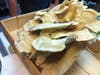 For example, tonight's placecard list of ingredients includes green tomatoes, cornbread, barley, cracklins, oyster, ground cherry and celtuce. Braised conk was simmering on the stove the night prior and brisket was seen.