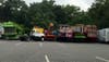 The amusement rides have begun arriving in downtown Sayville, parked in the side lot of the Sayville Shopping Center on North Main Street.