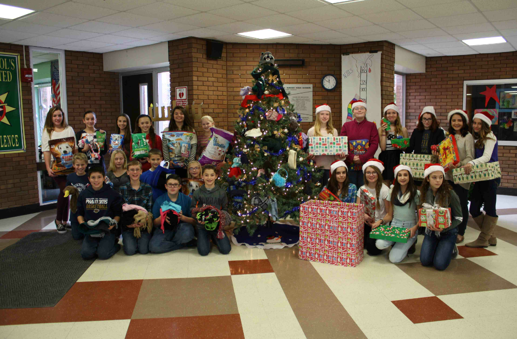 The national junior honor society organized a share the warmth drive, which solicited donations of cold weather outerwear items. During the initiative, they collected many hats, scarves and gloves for the Patchogue Soup Kitchen. Additionally, the eighth-grade class collected hundreds of toys for the Marines organized Toys for Tots program and the leadership club collected pet food and supplies for the Islip Animal Shelter.