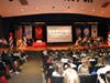 Lunch was just the beginning of the special tribute for the Veterans in attendance. Once they had their picture taken at a restored Jeep parked in the Commons (donated for the occasion by Linda Davis), the Veterans were escorted to the main event in the filled-to-capacity auditorium of students and faculty. The Middle School Band played a military fanfare as the Veterans paraded into the auditorium where they were welcomed with a standing ovation lasting several minutes.