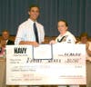 Petty Officer Liberty Borek, from the Navy Recruiting District-NY, presented one of the students, Daniel Siegel, with a check. Daniel Siegel was awarded a $180,000, 4-year NROTC scholarship to attend RPI (Rensselaer Polytechnic Institute) followed by service in the Navy.