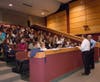 The morning of the event the participating students gathered in the high school auditorium for a pre-Shadow Day pep talk from Monsell. He reminded students they represent the school when they're out at the job.