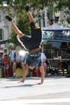 The break dancing performance had the audience clapping to the beat as the dancers showcased their impressive moves, like spinning on their heads.