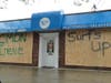 Sayville's downtown is busy Saturday afternoon as storeowners protect windows with plywood and residents scurry for last minute supplies.