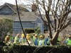 This morning along Post Rd. near the Eastchester border, crews from a Virginia electric company organized and planned out their day, tackling the continuing 10 outages that continued in the Edgewood and Eastchester border area.