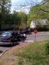 [3:01 Update: The motorist that crashed – a grey Infiniti sedan heated toward New Rochelle on Weaver St. – was passing a vehicle that was in the process of making a left hand turn onto Crossway. Passing on the right is illegal, but this driver did one worse than a ticket, and flipped the car into the yard alongside the roadway. The passengers were taken to White Plains Hospital and the vehicle was towed. The turning SUV was sideswiped but passengers were unharmed. More to come from Stefani later on.]