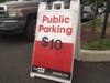 One cab driver waiting for a fare at the Taxi Stand at Village Hall, who happened to be standing next to the temporary red $10 Parking sign said, “you pay parking here, the train, then the tickets? No. You can't take your family to a game.”