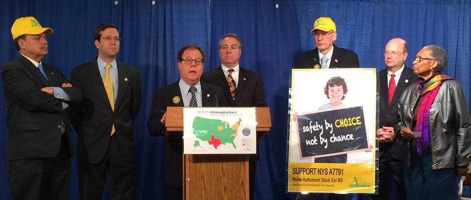 Senator Kemp Hannon said, “The timely administration of epinephrine to a child in anaphylactic shock could mean the difference between life and death. By authorizing schools to maintain and their employees to possess and administer auto-injectable epinephrine without a prescription, in the event of an emergency, this long overdue law will equip schools with the ability to assist a child suffering from a life-threatening allergic response.”
