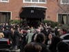 Every seat inside the temple was filled, and attendees piled out of the standing room along aisles, into the foyer, the outer entryway, and even pressed up against the exterior glass doors of the Riverside Memorial Chapel in Mount Vernon.