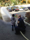 In addition to getting to wear firefighter helmets, the children pretended to steer the fire truck, sprayed the hose, learned about all the equipment and tools firefighters use, and met with local policemen for a tour of their station. The late-October day ended with a special Halloween luncheon pizza party at the Houlihan Lawrence corporate headquarters in Rye Brook.