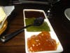 Before dinner we received cone shaped chips with three different dipping sauces. There was a brown tamarind sauce, a deep forest green mint dipping sauce and an orange-yellow mango chutney. All three were powerful flavors and a great start to the menu.
