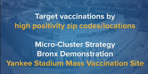 Cuomo also announced that the state would be looking to target vaccinations by high priority zip codes and locations and embracing the micro-cluster strategy to roll out the plan, which aims to bring down positivity rates in those areas.