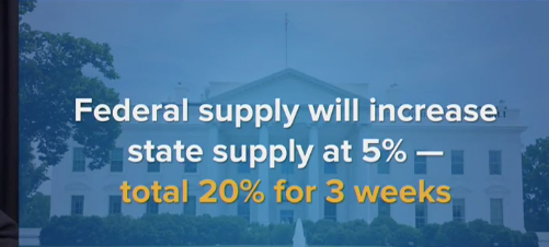 However, Cuomo said, the federal government has announced that it will increase state supply at 5 percent, or a total of 20 percent for three weeks, he said.